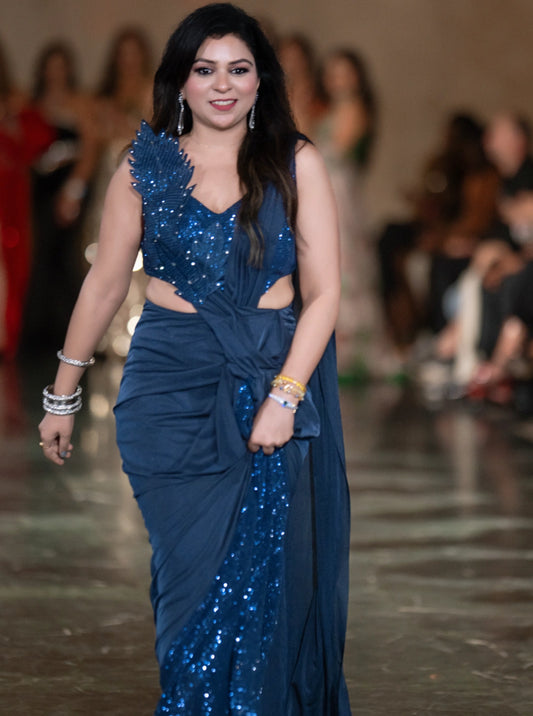 Shimmer with every step in the Blue Stardust Sequin Gown, a runway-ready ensemble that captures...