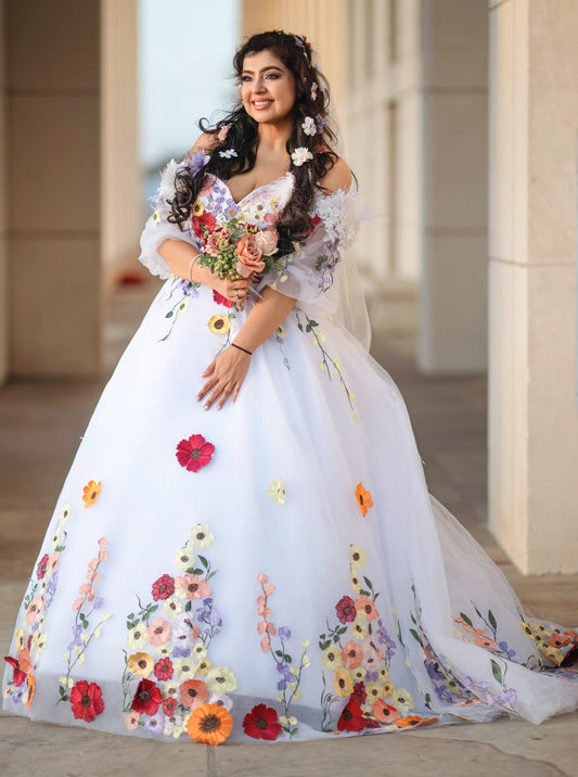 Celebrate love in full bloom with the Floral Reverie Bridal Gown. This enchanting white wedding...