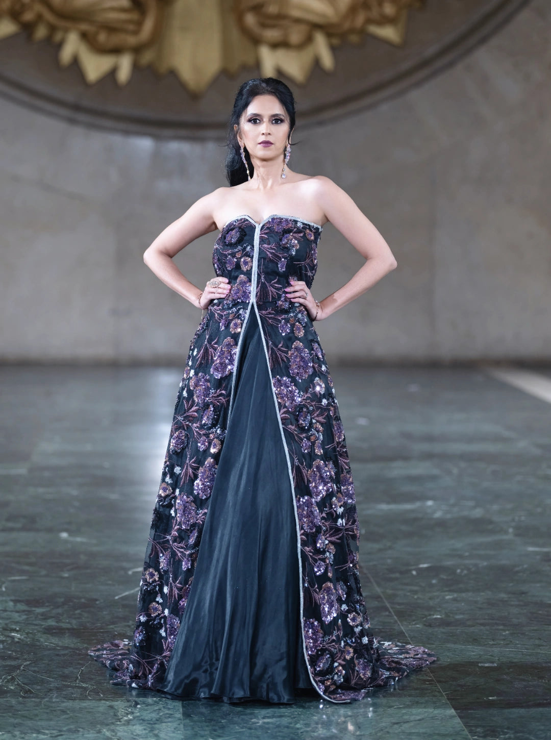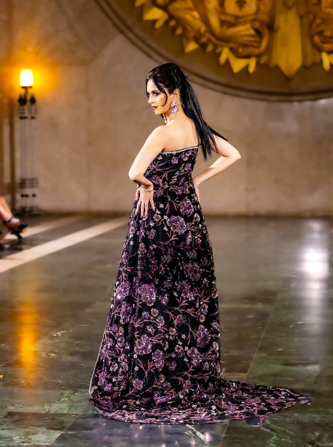 Radiate timeless elegance in the Blossom Grace Strapless Gown, a flowing masterpiece adorned with intricate floral patterns. The strapless neckline highlights the shoulders, while the full-length skirt adds a sense of grandeur and movement. Ideal for formal galas, romantic evenings, or any occasion where grace and beauty take center stage.
