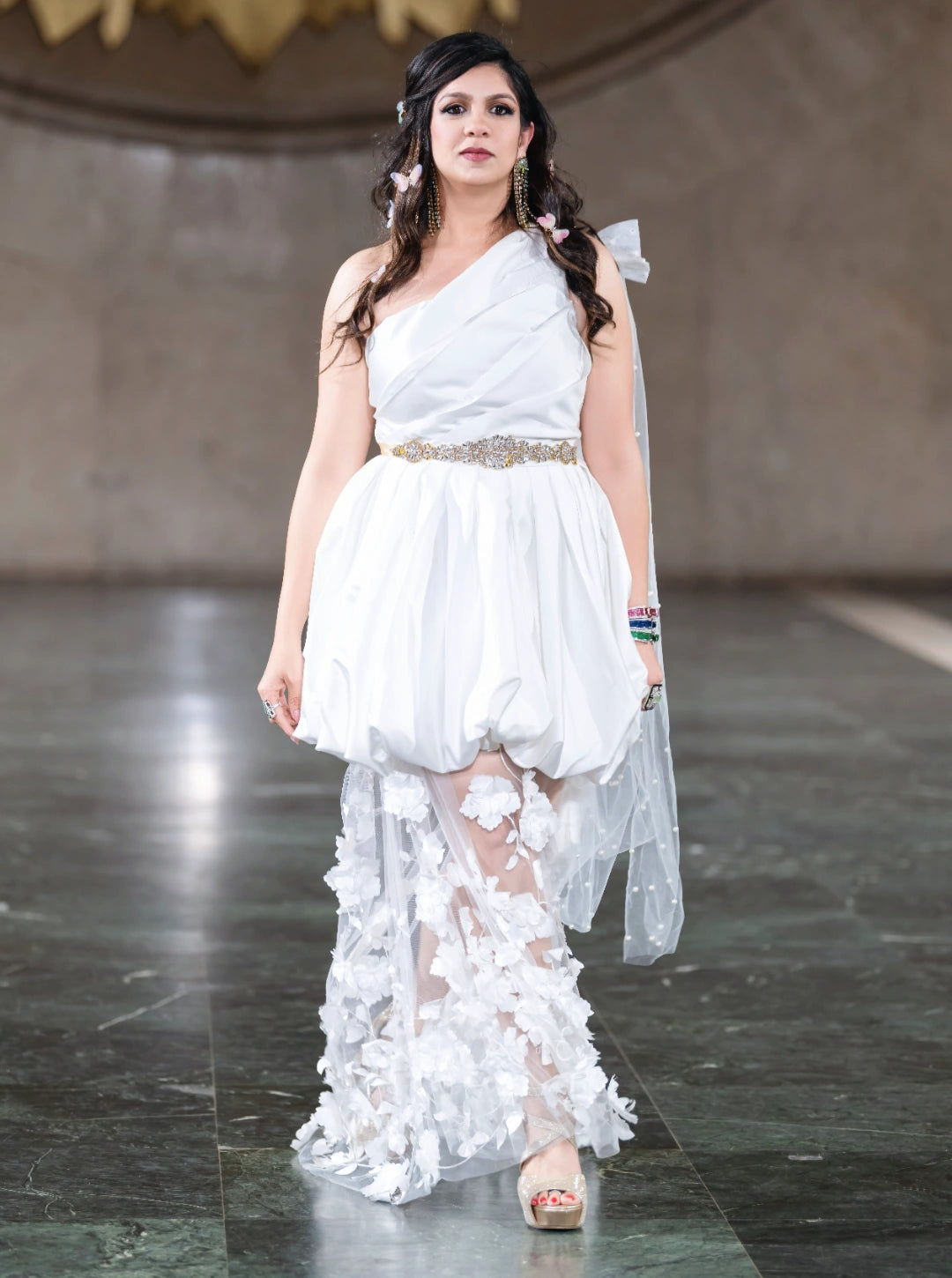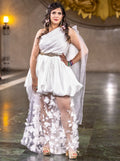 Delicate and graceful, the Ivory Whisper Sheer Gown is a vision of timeless elegance. This white dress features soft floral patterns cascading from the waist and a sheer overlay that adds ethereal movement. Perfect for formal occasions, bridal events, or serene evening gatherings, this gown speaks in soft tones of sophistication and charm.