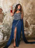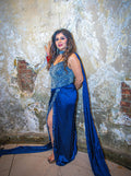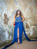 Channel serene elegance with the Ocean Muse Patterned Gown, a captivating blue dress adorned with intricate designs that echo the rhythm of waves and artistry. Set against a rustic backdrop, this gown blends modern sophistication with timeless charm—ideal for fashion shoots, evening events, or destination celebrations.